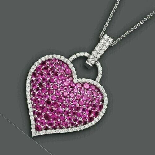 2Ct Round Cut Lab-Created Pink Ruby Cluster Heart Pendant 14K White Gold Plated