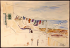 Aquarell „Die Wäsche“, signiert, datiert 20.10.1986