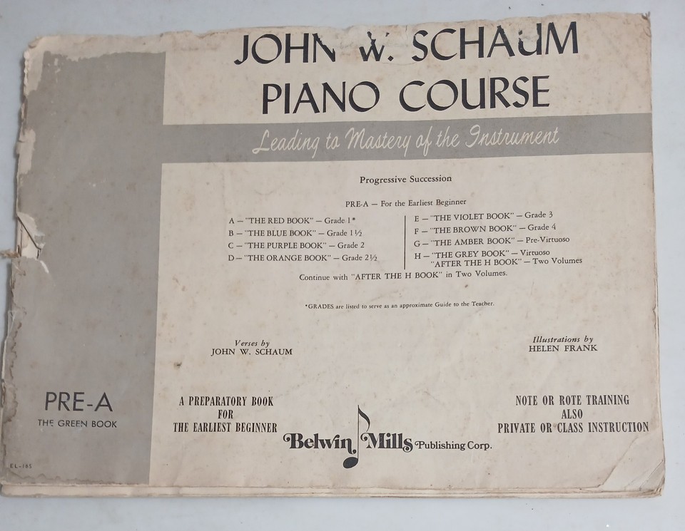 VINTAGE JOHN W. SCHAUM KLAVIERKURS GRÜNES BUCH VOR 1945 BELWIN IM MUSIKBLATT-