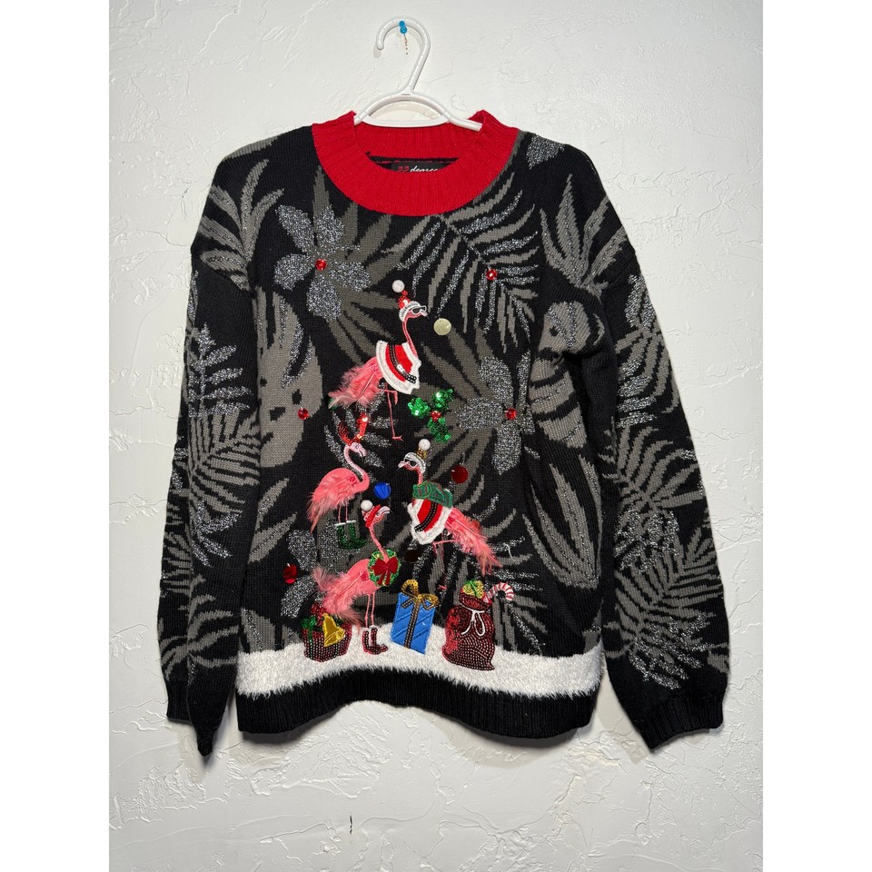 33 Degree flamingo ugly christmas sweater womens medium cozy holiday eclectic