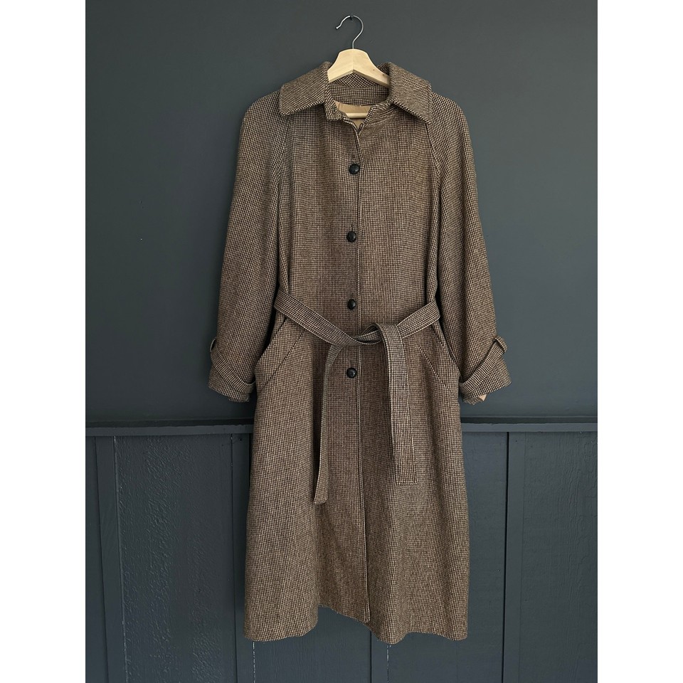 Vintage 1978 Sears Fashions Wool Tweed Long Trench Belted Coat Brown Ca. Med-