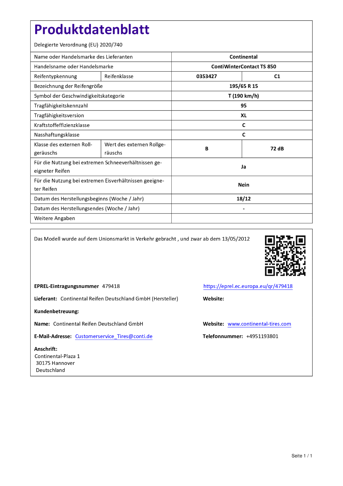 ContiWinterContact TS 850