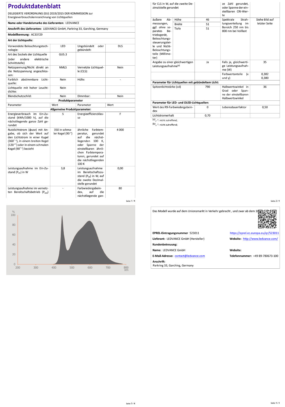 5 x Osram LED Parathom MR16 Reflektor 3,8W =35W GU5,3 12V 350lm kalt 4000K