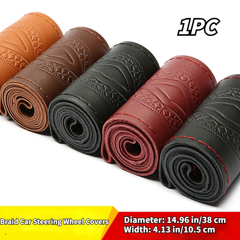 38CM DIY Geflecht Auto Lenkrad Bezug Echtleder Naht auf Folie Weich-