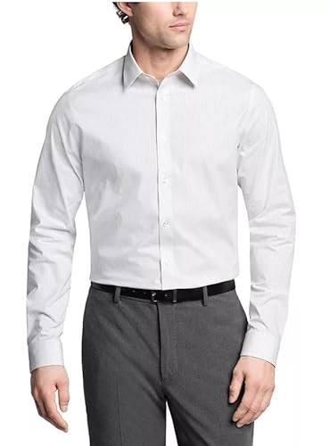 Calvin Klein Mens Slim fit Dress Shirt Large 16.5 in 34-35 Grey Striped