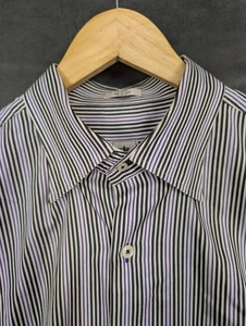 Peter Millar Hemd Herren Large lila schwarz weiß gestreift Langarm Oberhemd-