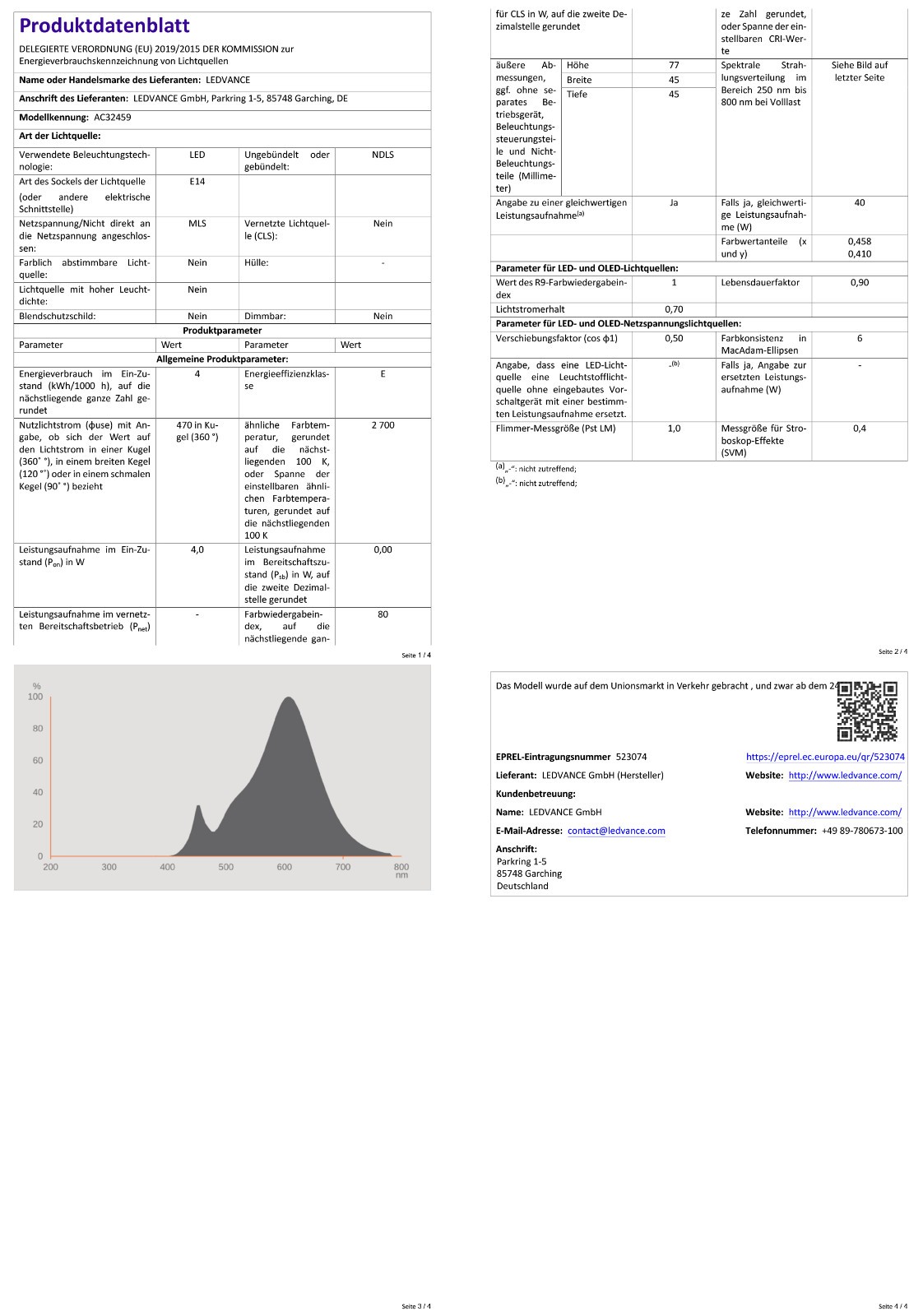 - OSRAM 4W Leuchtmittel mit E14 Sockel und 21W - 40W Leistung Leistung,