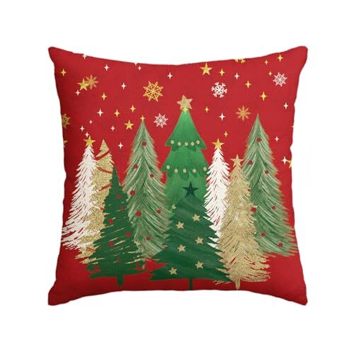 Green and Gold Merry Christmas Trees Snowflake Throw Pillow 18" x 18" Red