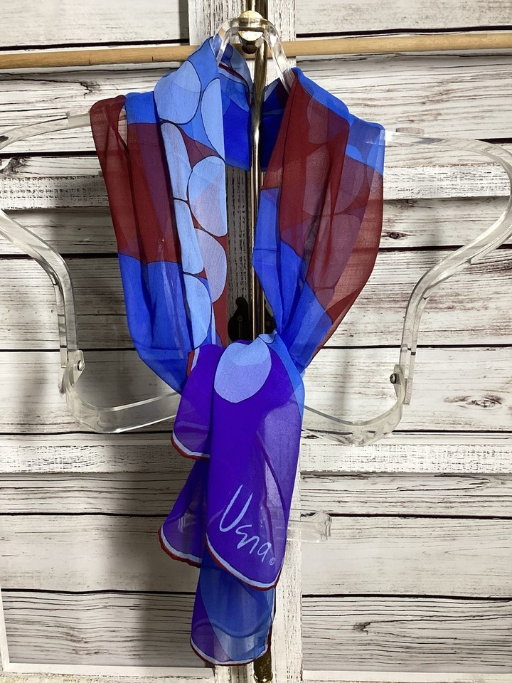 Vera Neumann Schal 14 x 44 lang Vintage MCM Modernist Kreise blau rot lila-