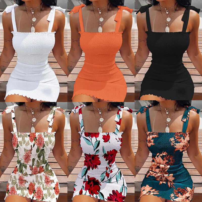 Damen Blumen Minikleid Träger Sexy Slim Bodycon Urlaub Strand Party Sommerkleid-