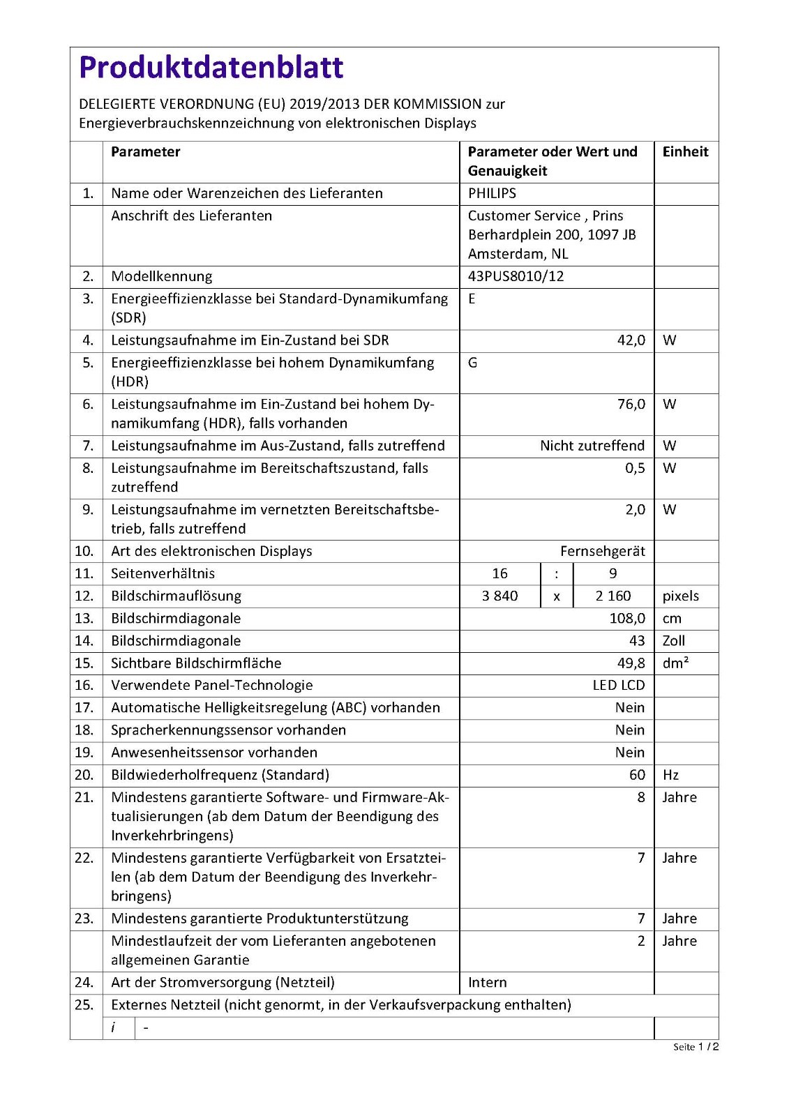 Philips LED-TV I 50PUS8010 I 50" Diagonale I 4K UHD I Smart TV
