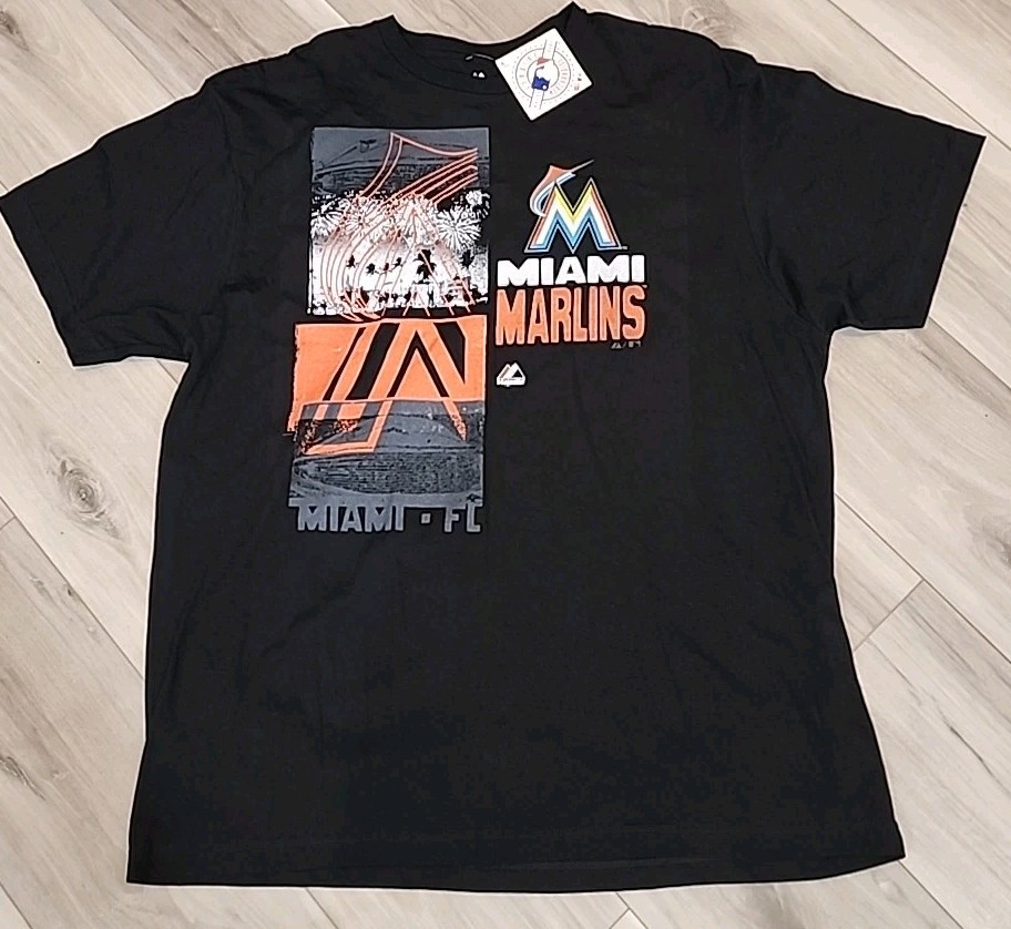 Majestic Miami Marlins MLB Herren 2XL schwarz Grafikdruck kurze Ärmel ringgesponnen-