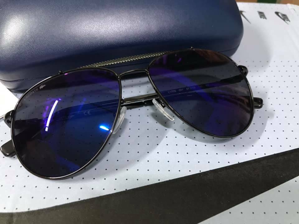 Lacoste L177s 001 Pilotensonnenbrille 57 mm schwarz Metall blaue Gläser Unisex neu mit Etikett-