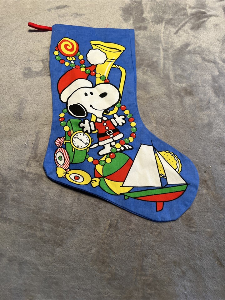 Vintage Snoopy Peanuts Weihnachtsstrumpf blau Baumwolle nie benutzt-