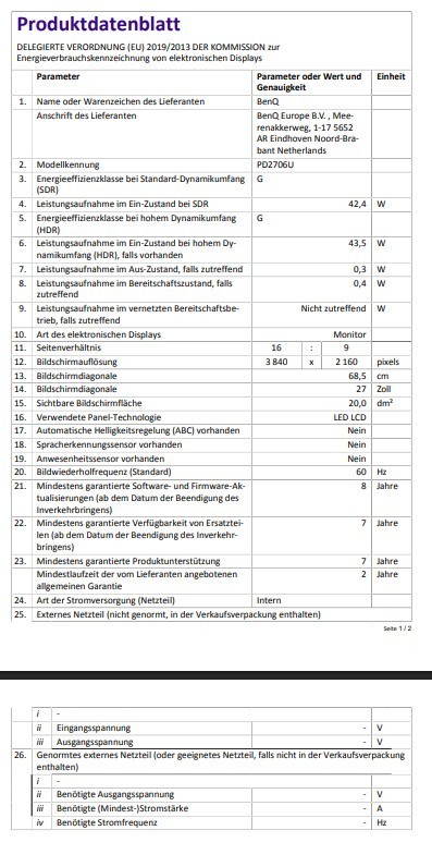 (BenQ DesignVue PD2706U - Professional Series - LED-Monitor - 4K - 68. 6 cm (27" ) - HDR. Lautsprecher - Stereo. Hotkey Puck G2, I/O-Abdeckung, power cable. 0:1-Rückgabe). Diese können unter anderem auch fest eingebaut sein.