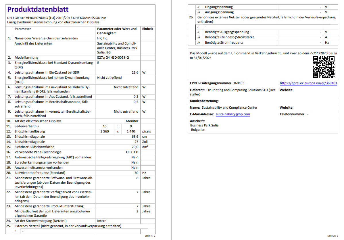 Artikel 1 HP E27q G4 Monitor 27 Zoll QHD HDMI DisplayPort VGA schwarz