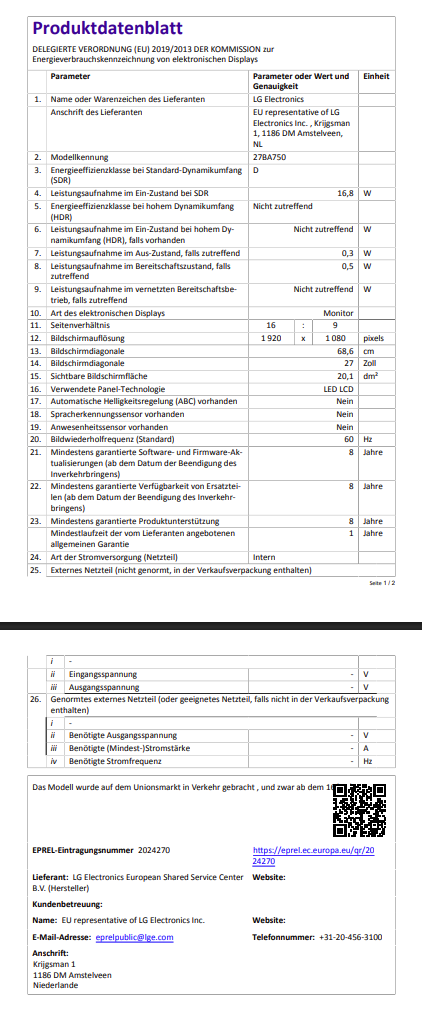 Artikel 1 LG 27BA750-B Monitor 68,6cm (27 Zoll)