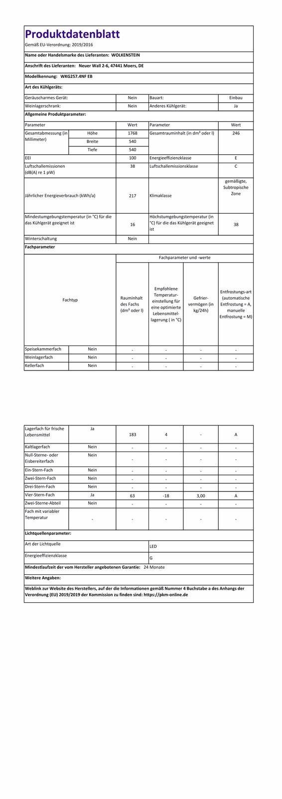 Geräteart: Einbau Kühl-Gefrierkombination. Angabe zum Gerät: Einbau. Beleuchtung im Kühlraum: ja. Kategorie des Haushaltskühlgerätemodells: 7 - Kühl-Gefriergerät. Energieeffizienzklasse A (höchste Effizienz) bis G (geringste Effizienz) nach neuer EU Norm: E.