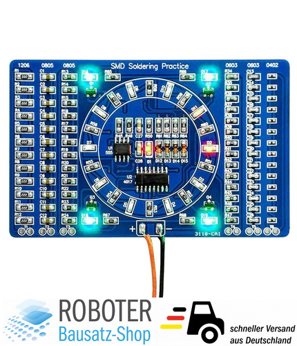 - Bausatz SMD Übungsplatine Lauflicht (für Fortgeschrittene) DIY-Elektronik LötenWird in neuem Fenster oder Tab geöffnetBrandneu | GewerblichEUR 4,89Sofort-Kaufen+EUR 13,99 Versandaus Deutschland363 verkauftBis 30% sparen mit Multi-Rabattroboter-bausatz (87.774) 99,9%
