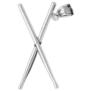 Rhodinierter 925 Sterling Silber 3-dimensionaler Drumsticks Anhänger