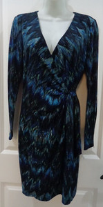 Schönes Cache💗Multi Blue Midi LS mit Reißverschlüssen Mokassin Tie Wickel Stretch Kleid💗Gr. M