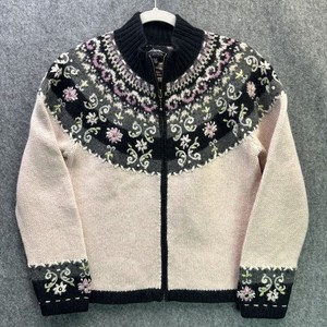 Isländisches Design Damen Pullover Medium Wolle Angora Full Zip Blumen gefüttert