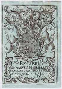 Exlibris Ballandrin Bresse Cure de Tossiet blason bookplate gravure 1710