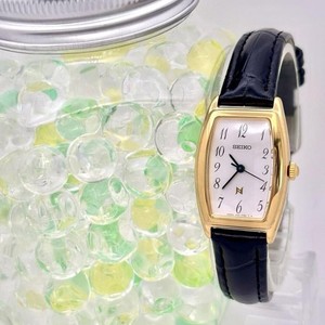 Seiko Gold Damen Armbanduhr 1N01-0LR0 frische Batterie schwarz echtes Armband