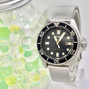 Seiko Taucheruhr 2625-0010 schwarzes Zifferblatt silbernes Band Batterie ersetzt für Damen