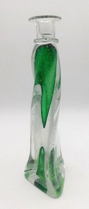 Adam Jablonski Kunstglas grün Kerzenhalter Polen signiert abstrakt Blasen