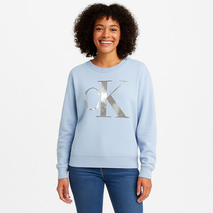 Neu mit Etikett Calvin Klein Jeans Damen-Sweatshirt Pailletten Logo Rundhalsausschnitt – blau – Small