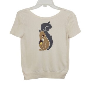 Cooperative Eichhörnchen Neuheit Strick Pullover T-Shirt Kurzarm U-Ausschnitt hinten Medium EUR 14,57