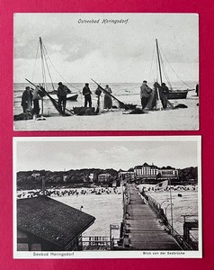 2 x AK Ostseebad HERINGSDORF um 1930 Fischer am Strand, Seebrücke ( 168651