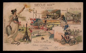 old post card FRANCE siecle XIXme Eiffel telegraphe automobile bicycle