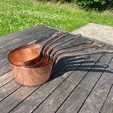 3er Set antike französische Kupferkellen mit Messinggriffen, vor 1940