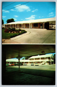 Postkarte MO The Stephens Motel Columbia Missouri Doppelansicht alte Autos