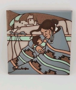 Vintage Keramik Cleo Teissedre Südwest Indianer Mutter Kunst Fliese