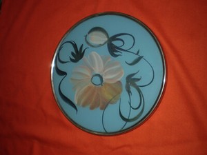 Vintage Art Deco Reverse Painted Glass & Metal framed Round Serving Tray photo 5