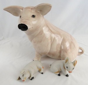 Vintage weißer Spaghetti Pudel Hund mit WELPE MCM Figuren Japan süß
