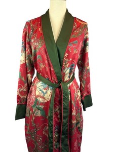 Pottery Barn Kimono Morgenmantel Dahlia Blumenmuster M rot grün 100% Polyester