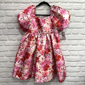 NEU Bonnie Jean Mädchen Größe 16 PINK GEBLÜMT Puffärmel Rüschen & Schimmer Kleid Neu mit Etikett