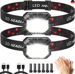 Stirnlampe LED Wiederaufladbar,MLIAIMCE 2 Stück 2000 Lumens Superhell Sensor