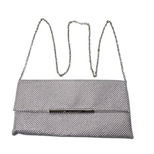 INC Hether Shiny Mesh Damen Clutch Handtasche Etui Metallic Silber Kettenriemen