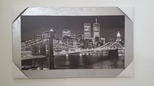 MODERNES GEMÄLDE NEW YORK BROOKLYN BRIDGE SILBER RAHMEN EINRICHTUNG HAUS WOHNZIMMER WOHNZIMMER EUR 310,00