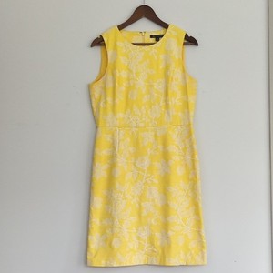 Brooks Brothers gelbes geblümtes Baumwollkleid mit weißen bestickten Blumen 10