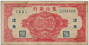 China 1945 Tung Pei Bank 50 Yuan P-S3731