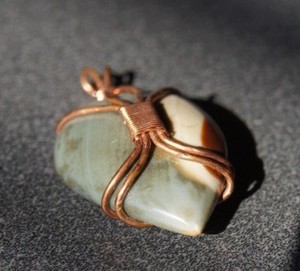 Anhänger handgefertigt, wunderschön grün, elfenbein, braune Farbe mit Kupfer.