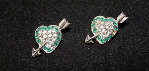 Vintage heart brooches with arrow through them with rhinestones silver color