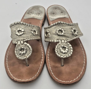 Jack Rogers Damen 8 Sandalen silber Riemen Ledersohle Brasilien Peitschenstich Rondelle