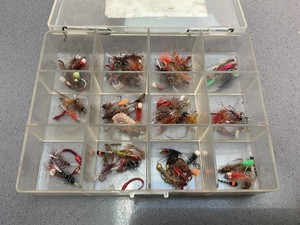 Fliegenfischen Gerätebox mit 84 verschiedenen Fliegenködern bunt